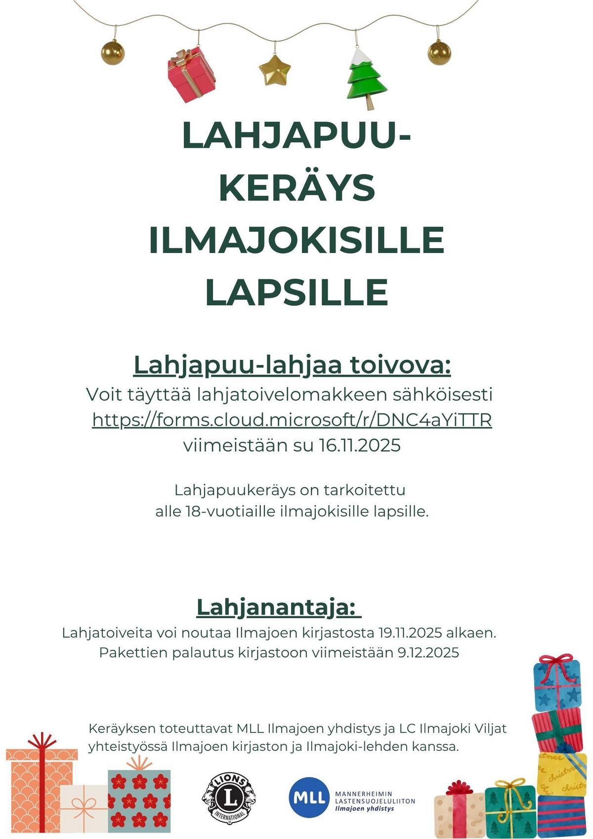 Lahjapuu-keräys on tarkoitettu alle 18-vuotiaille ILMAJOKISILLE lapsille.