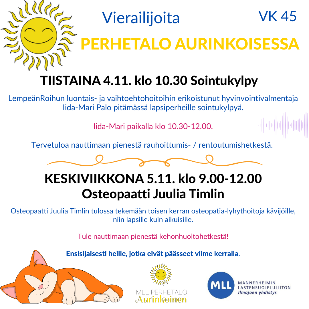 o Perhekeskuskoordinaattori tavattavissa klo 9-10.30.